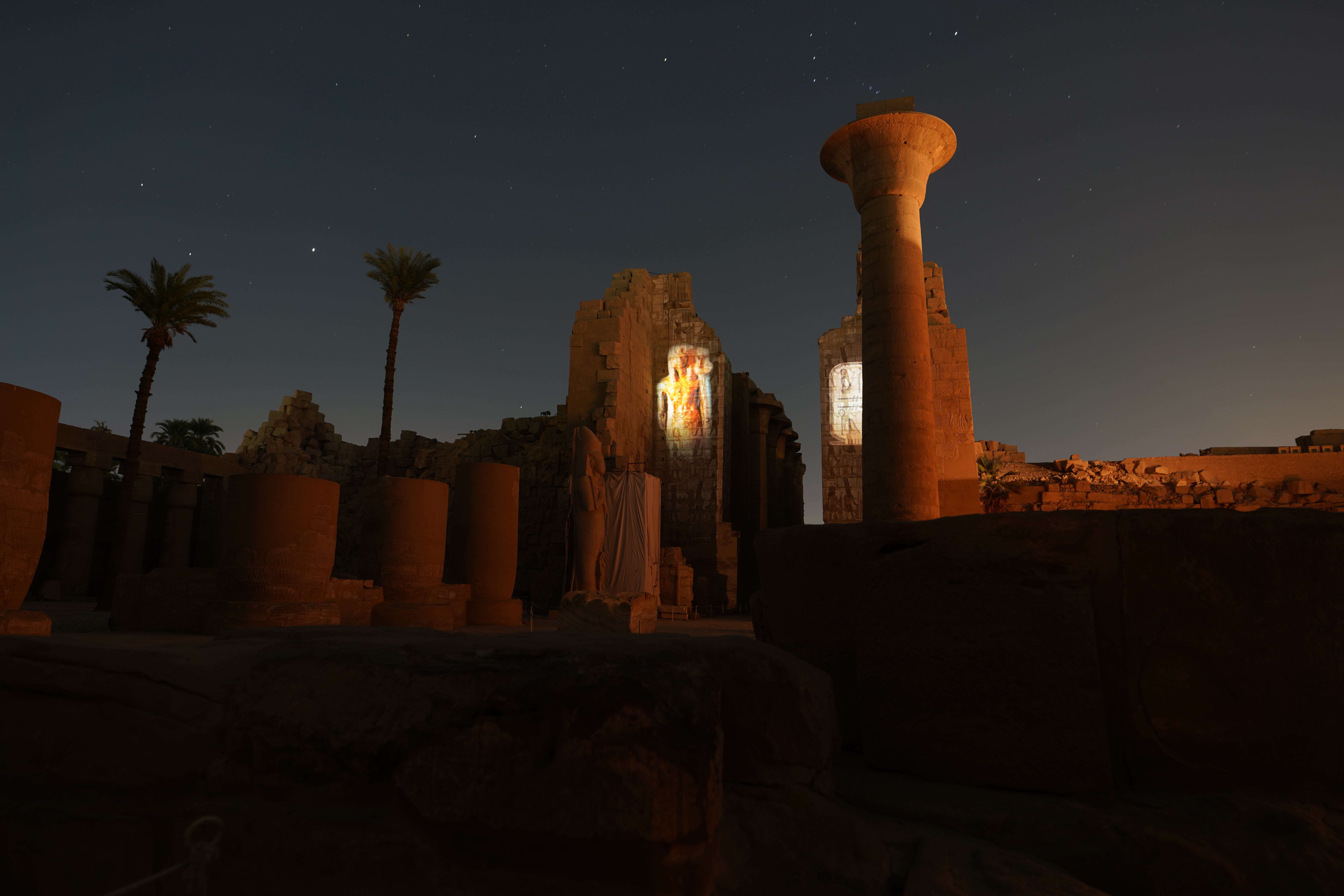 Was mögen sich die Könige wohl beim Bau des Karnak-Tempels gedacht haben? Und wie sieht es da nachts eigentlich aus? Diese Fragen klärt die Licht- und Ton-Show.