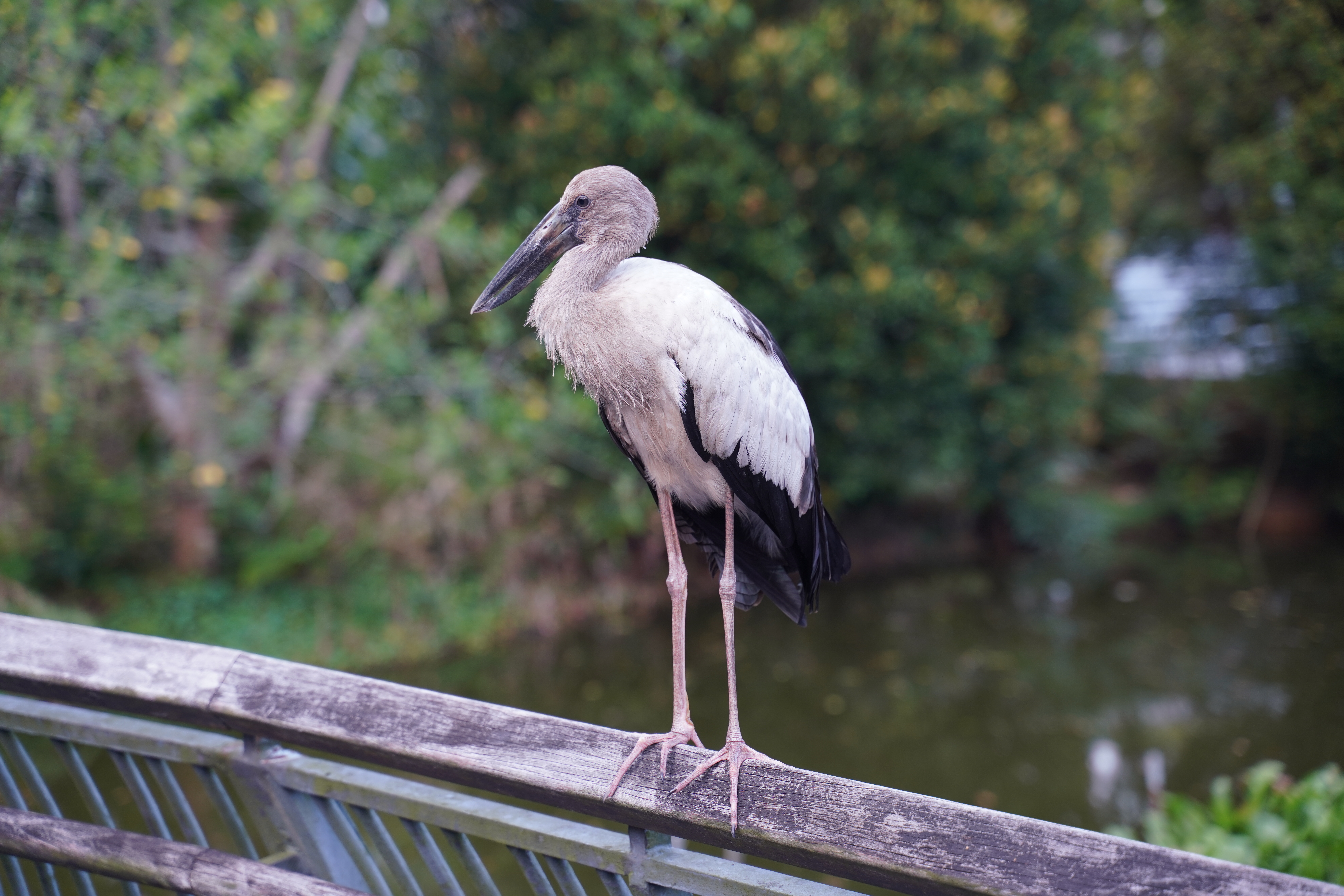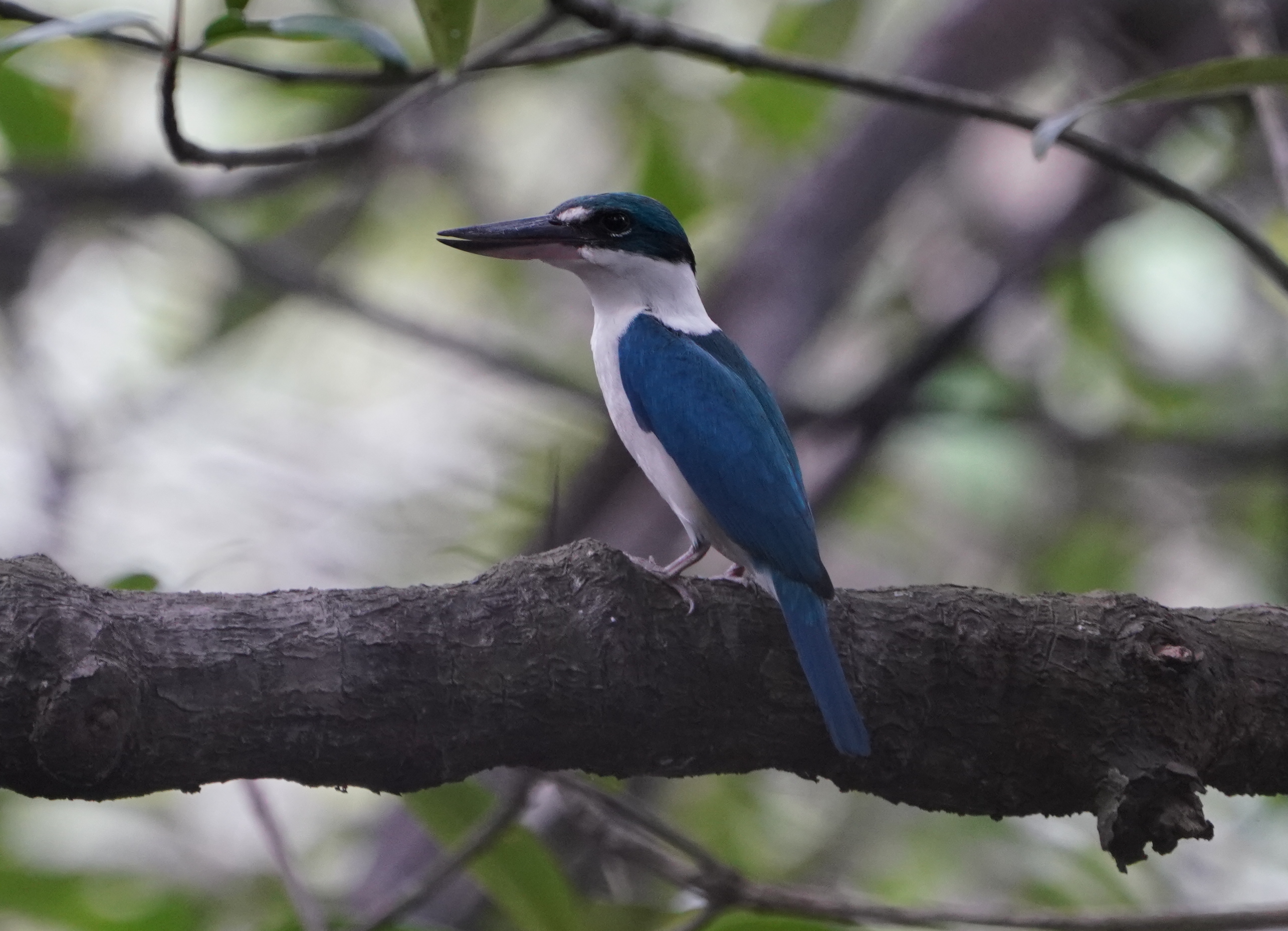 Kurz darauf hocken beim Parkplatz am Wetlands-Zentrum (das ist nicht das Besucherzentrum) 6 oder 7 Fotografen auf dem Boden. In dem keinen Wäldchen (das von Wegen umgegeben ist) soll eine Baumstelze sein. Mir zeigt sie sich nicht. Stattdessen kommt der hier aus dem Wald: