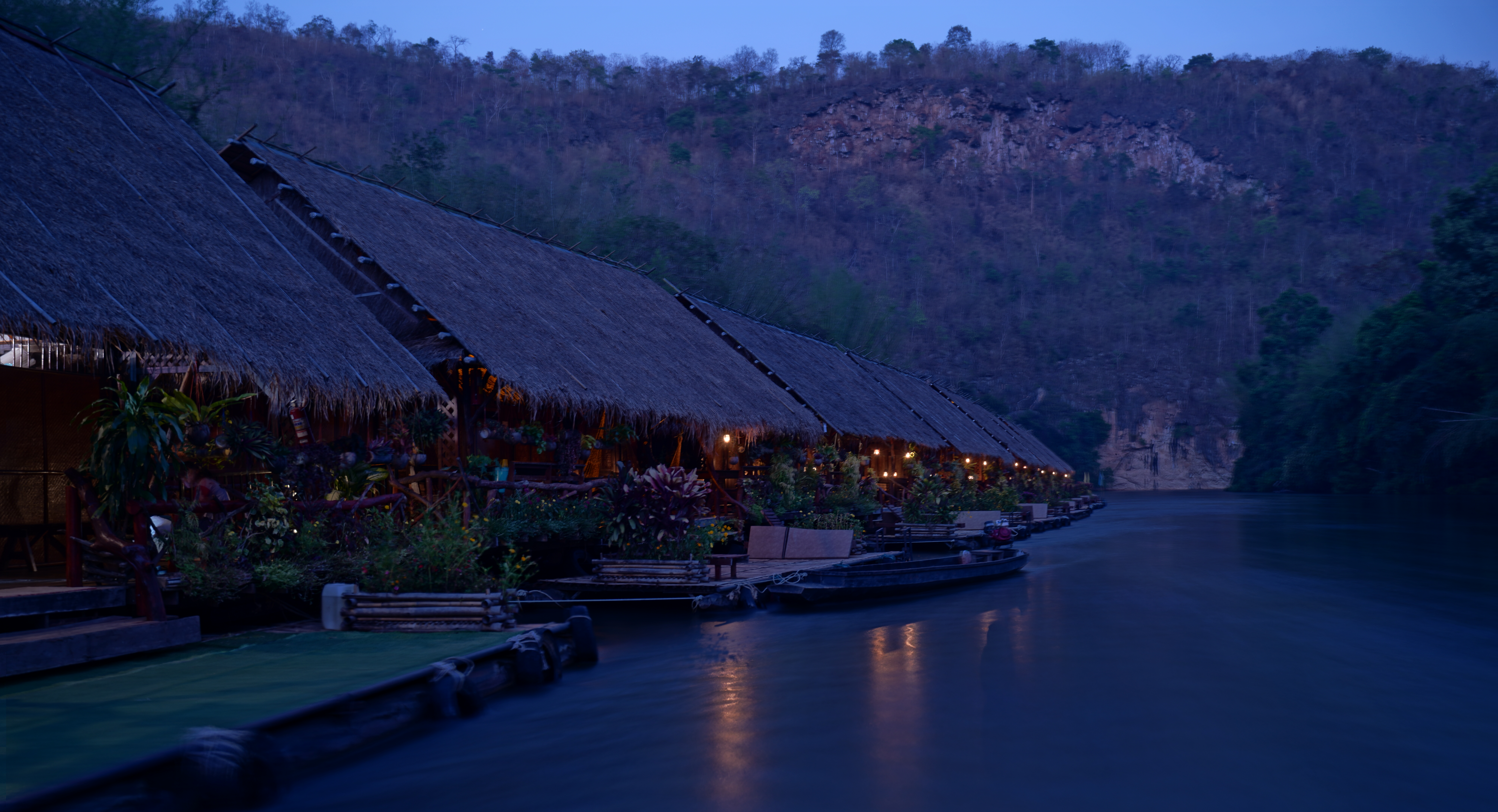 Ich bin traurig, dass man von unserem Tee-Platz, dem Hotelcafé Blue River den Sonnenuntergang nicht sehen wird. Das Hotelpersonal lässt uns aber nach ganz oben zum Poolbereich der exklusivsten Zimmer. Von dort aus passt es dann.