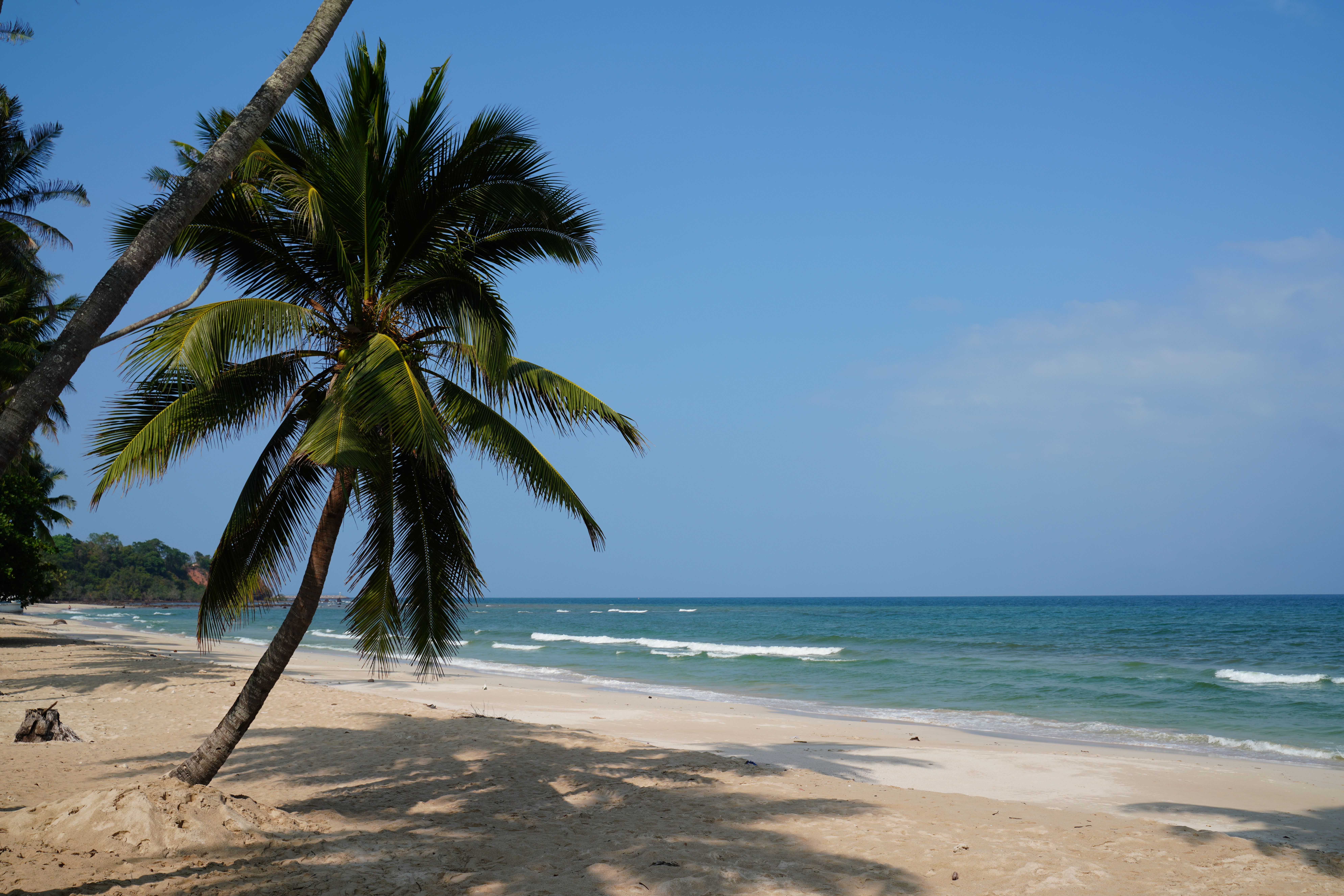 Nach einem Stopp bei PTT – wir haben Zeit, den winzigen Amazon zu überrennen, der hier nur ein Stand ist – geht es zum Strand. 30 Minuten Stopp. Baden sollen wir nicht, also stehen wir 30 Minuten in der Gegend rum. Zum Glück kommt ein Kokoseisverkäufer mit seinem umgebauten Moped vorbei.