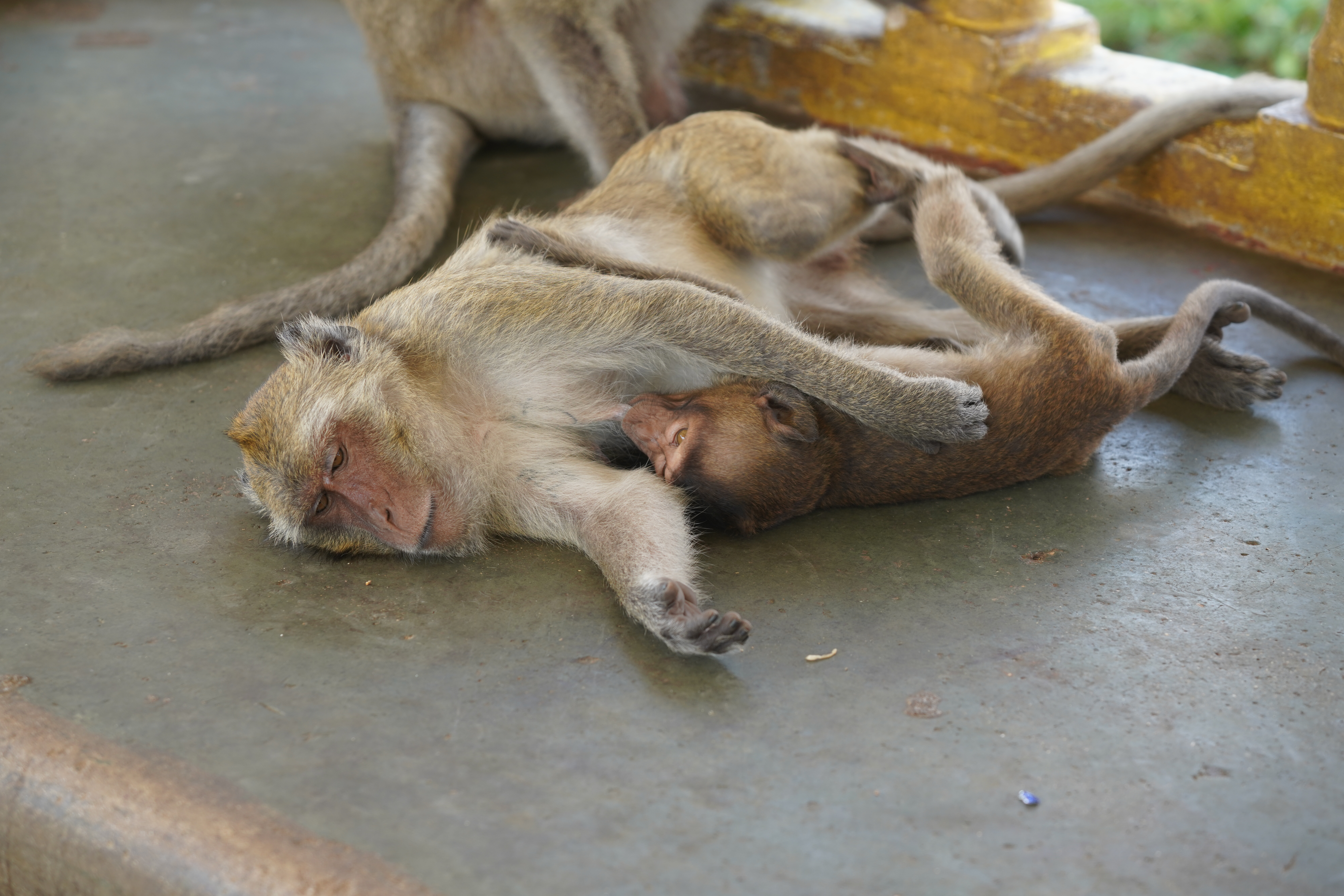 Auch auf dem Weg zum oberen Tempel gibt es zahlreiche Affen: